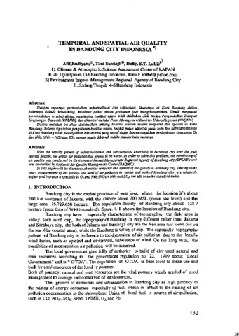 Afif Budiyono and Toni Samiaji and Rully S.T. Lubis (2007) Temporal and spatial air quality in Bandung City Indonesia. In: Polusi udara : model dan aplikasinya. LAPAN, Bandung, pp. 132-141. ISBN 978-979-1458-09-2