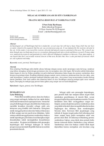 I Putu, Yuda Haribuana (2013) Melacak sumber logam di situs Tamblingan. Forum Arkeologi, 26 (1): 7. pp. 75-84. ISSN 0854-3232