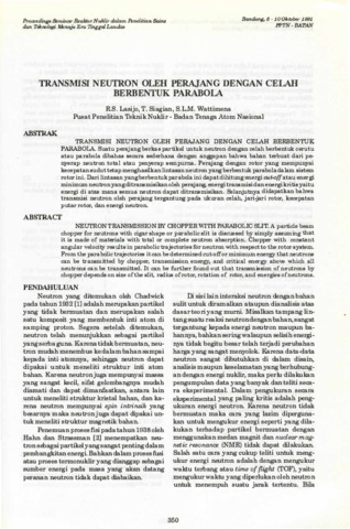 R.S. Lasijo and T.Siagian and S.L.M. Wattimena (1991) Transmisi neutron oleh perajang dengan celah berbentuk parabola. In: Seminar Reaktor Nuklir dalam Penelitian Sains dan Teknologi Menuju Era Tinggal Landas, 8-10 Oktober 1991, Bandung.