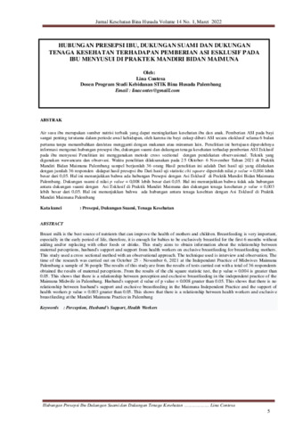 sangat penting terutama dalam periode awal kehidupan, oleh karena itu bayi cukup diberi ASI secara eksklusif selama 6 bulan pertama tanpa menambahkan dan/atau mengganti dengan makanan atau minuman lain. Penelitian ini bertujuan diperolehnya informasi mengenai hubungan presepsi ibu, dukungan suami dan dukungan tenaga kesehatan terhadap pemberian ASI Esklusif pada ibu menyusui Penelitian ini menggunakan metode cross sectional dengan pendekatan observasional. Teknik yang digunakan wawancara dan observasi. Waktu penelitian dilaksanakan pada 25 Oktober- 6 November Tahun 2021 di Praktik Mandiri Bidan Maimuna Palembang sampel berjumlah 36 orang Hasil penelitian ini adalah Dari hasil uji yang dilakukan dengan jumlah 36 responden didapat hasil presepsi ibu Dari hasil uji statistic chi square diperoleh nilai p value = 0,004 lebih