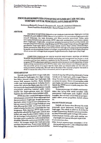 Sudarsono Katam and Corres D. and Sumantono K. and Annas H. and Zulfakhri and E. Rukmini Program komputer pemantauan limbah cair secara terpadu untuk pengolahan limbah PPTN. Proceeding seminar seperempat abad reaktor nuklir mengabdi ilmu pengetahuan dan teknologi: 50. pp. 1-3.