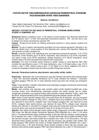 Rasdiana and Dina Mariana (2018) Faktor-faktor yang mempengaruhi gangguan premenstrual syndrome pada mahasiswi Akper Yarsi Samarinda. Holistik: Jurnal Kesehatan, 12 (2): 3. pp. 74-82. ISSN 1978-3337