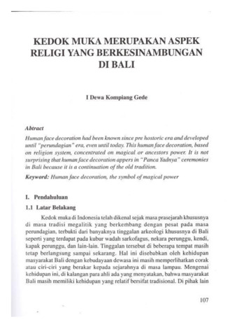 I Dewa, Kompiang Gede (2008) Kedok muka merupakan aspek religi yang berkesinambungan di Bali. Forum Arkeologi, 21 (1). pp. 107-118. ISSN 0854-3232