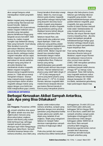Ayu Dyah Pangestu (2021) Berbagai kerusakan akibat sampah Antariksa, lalu apa yang bisa dilakukan? Buletin Cuaca Antariksa, 10 (1): 6. pp. 17-20. ISSN 2303-2707