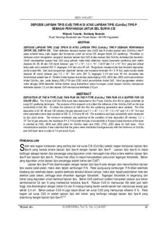 DEPOSISI LAPISAN TIPIS (CdS) TIPE-N DI ATAS LAPISAN TIPIS (CuInSe2) TIPE-P SEBAGAI PENYANGGA