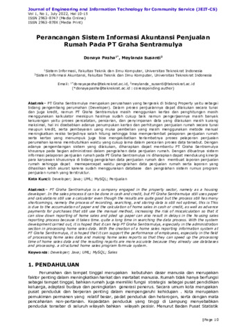Donaya Pasha and Meylanda Susanti (2022) Perancangan sistem informasi akuntansi penjualan rumah pada PT Graha Sentramulya. Journal of Engineering and Information Technology for Community Service (JEIT-CS), 1 (1): 3. pp. 10-15. ISSN 2963-878X