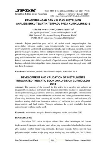 Alia Nur Husna, Afandi and Kukuh Andri, Aka (2019) Pengembangan dan validasi instrumen analisis buku tematik-terpadu pada kurikulum 2013. Jurnal Pendidikan Dasar Nusantara, 4 (2): 9. pp. 199-219. ISSN 2460-6324