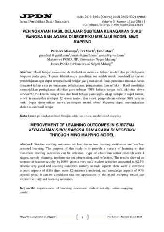 Parindra, Mismoyo and Tri, Murti and Esti, Untari (2019) Peningkatan hasil belajar subtema keragaman suku bangsa dan agama di negeriku melalui model mind mapping. Jurnal Pendidikan Dasar Nusantara, 5 (1): 1. pp. 1-14. ISSN 2460-6324