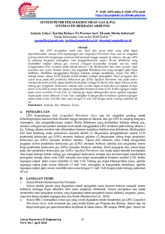 Zakaria, Yahya and Kartika Rahayu Tri Prasetyo, Sari and Elsanda Merita, Indrawati (2022) Sistem pendeteksi kebocoran gas (LPG) otomastis berbasis Arduino. Nusantara of Engineering: Jurnal Ilmiah Fakultas Teknik Univ. Nusantara PGRI Kediri, 5 (1): 8. pp. 58-65. ISSN 2355-6684