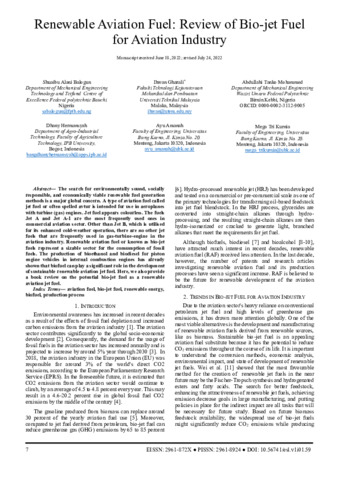 | Uncontrolled Keywords: | Aviation fuel, Bio-jet fuel, Renewable energy, Biofuel, Production process |