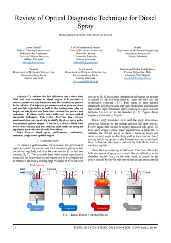 Ihwan, Ghazali and La Ode, Mohammad Firman and Handi, Handi and Yusrizal, Yusrizal and Ayu, Amanah and Mohammed, Bashir Abdulrahman (2022) Review of optical diagnostic technique for diesel spray. Engineering Science Letter, 1 (1). pp. 12-14. ISSN 2961-8924