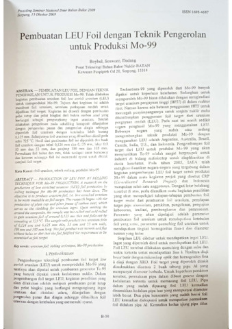 Boybul and Susworo and Dadang (2009) Pembuatan LEU foil dengan teknik pengerolan untuk produksi Mo-99. Proceeding seminar nasional daur bahan bakar 2009: B7. pp. 1-5. ISSN 1693-4687