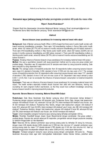 Rilyani and Renda Wulandasari (2019) Konsumsi sayur jantung pisang terhadap peningkatan produksi ASI pada ibu masa nifas. Holistik: Jurnal Kesehatan, 13 (4): 12. pp. 358-364. ISSN 1978-3337