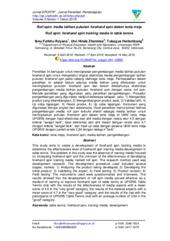 Ibnu Fatkhu Royana and Utvi Hinda Zhannisa and Tubagus Herlambang (2019) Roll spin: media latihan pukulan forehand spin dalam tenis meja Roll spin: forehand spin training media in table tennis. Jurnal SPORTIF: Jurnal Penelitian Pembelajaran, 5 (1): 10. pp. 113-123. ISSN 2548 – 7833