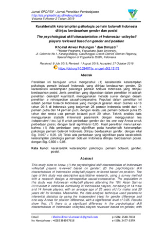 Khoirul Anwar Pulungan and Dimyati (2019) Karakteristik keterampilan psikologis pemain bolavoli Indonesia ditinjau berdasarkan gender dan posisi. Jurnal SPORTIF: Jurnal Penelitian Pembelajaran, 5 (2): 9. pp. 279-295. ISSN 2548 – 7833