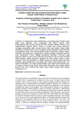 | Uncontrolled Keywords: | kondisi fisik, atlet, porprov |