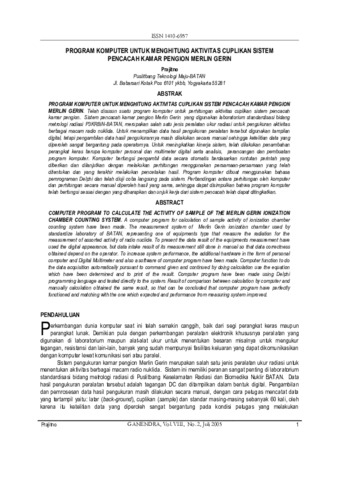 PROGRAM KOMPUTER UNTUK MENGHITUNG AKTIVITAS CUPLIKAN SISTEM PENCACAH KAMAR PENGION