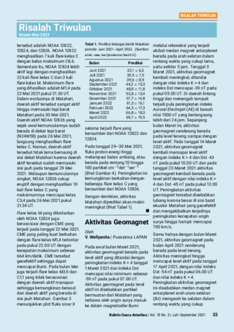 Visca Wellyanita (2021) Risalah Triwulan Maret - Mei 2021 Aktivitas Geomagnet. Buletin Cuaca Antariksa, 10 (3): 15. pp. 33-35. ISSN 2303-2707