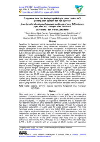Ela Yuliana and Wara Kushartanti (2020) Fungsional lutut dan kesiapan psikologis pasca cedera ACL penanganan operatif dan non-operatif. Jurnal SPORTIF: Jurnal Penelitian Pembelajaran, 6 (3): 2. pp. 561-574. ISSN 2548 – 7833