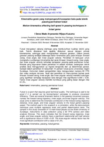 I Dewa Made Aryananda Wijaya Kusuma (2020) Kinematika gerak yang mempengaruhi kecepatan bola pada teknik passing permainan futsal. Jurnal SPORTIF: Jurnal Penelitian Pembelajaran, 6 (3): 10. pp. 674-683. ISSN 2548 – 7833