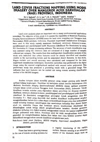 | Subjects: | Taksonomi LAPAN > Teknologi Penerbangan dan Antariksa > Penelitian, Pengembangan, Perekayasaan, dan Pemanfaatan > Teknologi Satelit > Pengolahan Data Penginderaan Jauh > Data Citra Taksonomi LAPAN > Teknologi Penginderaan Jauh > Penelitian, Pengkajian, dan Pengembangan > Teknologi dan Data Penginderaan Jauh |