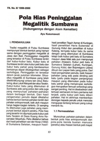 Ayu, Kusumawati (1999) Pola hias peninggalan megalitik Sumbawa (hubungannya dengan alam kematian). Forum Arkeologi, 11 (2): 2. pp. 12-16. ISSN 0854-3232