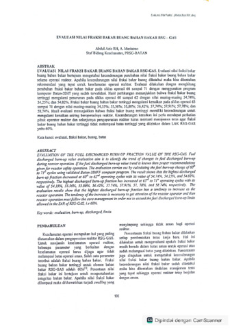 Evaluasi nilai fraksi buang bahan bakar bertujuan mengetahui kecenderuan perubahan nilai fraksi bakar buang bahan bakar selama operasi reaktor. Apabila Kecenderungan nilai fraksi buang bakar diketahui maka bisa ditentukan rekomendasi yang tepat untuk keselamatan operasi reaktor. Evaluasi dilakukan dengan menghitung perubahan fraksi bahan bakar pada siklus operasi 60 sampai 71 dengan menggunakan program komputer Batan-2Diff yang sudah tervalidasi. Hasil perhitungan menunjukakan bahwa fraksi bakar buang tertinggi mengalami penurunan pada siklus operasi 60 sampai 62 dengan nilai masing-masing 54,74%;54,25%; dan 54,02%. Fraksi bakar buang bahan bakar tertinggi mengalamin kenaikan pada siklus operasi 63 sampai 71 dengan nilai masing-masing 54,35%; 55,56%; 55,80%; 56,42%; 57,74%; 57,91%; 57,78%; dan 58,74%. Hasil evaluasi menunjukan bahwa fraksi bakar buang tertinggi memiliki kecenderungan untuk mengalami kenaikan seiring beroperasinya reaktor. Kecenderungan kenaikan ini perlu mendapat perhatian pihak reaktor dan selanjutnya pengoperasian reaktor harus mentaati manajemen teras agar fraksi bakar buang bahan bakar tertinggi tidak melampaui batang tertinggi yang diizinkan dalam LAK RSG-GAS yaitu 60%.