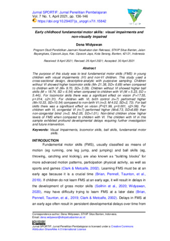 Dena Widyawan (2021) Early childhood fundamental motor skills: visual impairments andnon-visually impaired. Jurnal SPORTIF: Jurnal Penelitian Pembelajaran, 7 (1): 10. pp. 136-146. ISSN 2548 – 7833