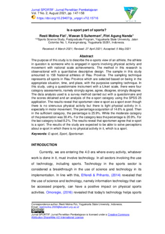 Resti Molina Fizi and Wawan S Suherman and Fitri Agung Nanda (2021) Is e-sport part of sports? Jurnal SPORTIF: Jurnal Penelitian Pembelajaran, 7 (2): 1. pp. 147-158. ISSN 2548 – 7833