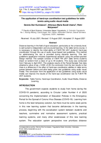Distance learning in the field of sport education, particularly at the university level,is well suited to independent and structured learning. In the table tennis course, itis necessary to identify the initial ability of PJKR FIK UNY students' hand-eye coordination through the use of audio visual based test guidelines. The method for administering the test is provided during distance learning. This test guideline's application includes experimental research using the pretest-posttest design method. The sample consists of PJKR FIK UNY table tennis students drawn at random from a class of up to 40 students. This study was conducted from February to April 2021. The analysis results of the Paired Sample Test data obtained a value of sig = 0.000 <0.05, the conclusion from the test results is that there is a difference in the effect of hand-eye coordination abilities in table tennis games between before and after being given test guidelines using audio visual media. The conclusion from the application of test guidelines using audio visual media can improve the results of the hand-eye coordination test for PJKR FIK UNY students.