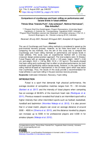 Thirsia, Ghea Yolanda Putri and Caly, setiawan and Rahmat, Hermawan and Elsa, Ariestika (2021) Comparison of cryotherapy and foam rolling on performance and lactate levels in futsal athletes. Jurnal SPORTIF: Jurnal Penelitian Pembelajaran, 7 (2): 8. pp. 248-257. ISSN 2548 – 7833