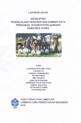 Gunawan Pratama Yoga and Fauzan Ali and Tjandra Chrismadha and Tri Widiyanto (2016) Laporan akhir difusi IPTEK pengelolaan perairan dan sumber daya perikanan di Kabupaten Samosir Sumatera Utara. Technical Report. Pusat Penelitian Limnologi, Cibinong. (Unpublished)
