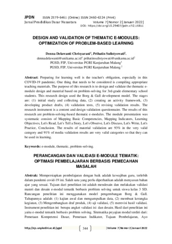 Denna Delawanti, Chrisyarani and Prihatin, Sulistyowati (2022) Design and validation of thematic e-modules: optimization of Problem-Based Learning. Jurnal Pendidikan Dasar Nusantara, 7 (2): 9. pp. 344-353. ISSN 2460-6324