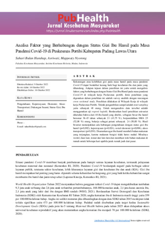 Sahari, Bulan Harahap and Asriwati, Asriwati and Mappeaty, Nyorong (2022) Analisa faktor yang berhubungan dengan status gizi ibu hamil pada masa pandemi Covid-19 di Puskesmas Portibi Kabupaten Padang Lawas Utara. Pubhealth Jurnal Kesehatan Masyarakat, 1 (2): 2. pp. 130-135. ISSN 2830-7224