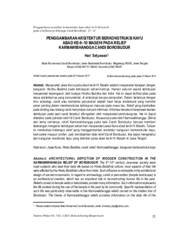 Hari Setyawan (2011) Penggambaran arsitektur berkonstruksi kayu Abad ke-9-10 Masehi pada relief Karmawibhangga Candi Borobudur. Naditira Widya, 5 (1): 3. pp. 25-46. ISSN 1410 - 0932