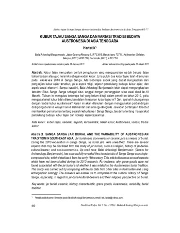 Hartatik, Hartatik (2011) Kubur Tajau Sanga-Sanga dan variasi tradisi budaya Austronesia di Asia Tenggara. Naditira Widya, 5 (1): 5. pp. 60-77. ISSN 1410 - 0932