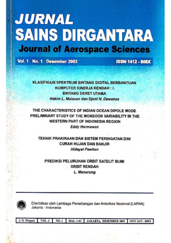 Hakim L. Malasan and Djoni N. Dawanas (2003) Klasifikasi spektrum bintang digital berbantuan komputer kinerja rendah: I. bintang deret utama. Jurnal Sains Dirgantara, 1 (1): 1. pp. 1-22. ISSN 1412-808X