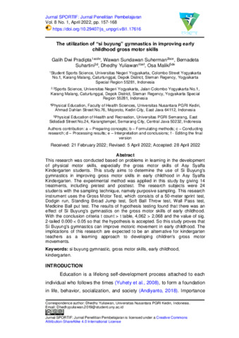 | Uncontrolled Keywords: | si buyung gymnastic, gross motor skills, early childhood, kindergarten. |