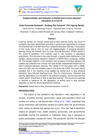 Ocha Fernanda Kustantri and Endang Rini Sukamti and Fitri Agung Nanda (2022) Implementation and indicator of limited face-to-face physical education in covid-19. Jurnal SPORTIF: Jurnal Penelitian Pembelajaran, 8 (1): 1. 1 -14. ISSN 2548 – 7833