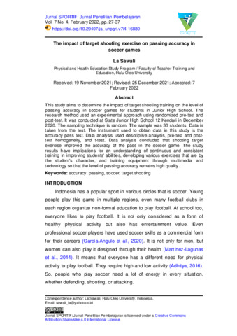 La Sawali (2022) The impact of target shooting exercise on passing accuracy in soccer games. Jurnal SPORTIF: Jurnal Penelitian Pembelajaran, 7 (4): 3. pp. 27-37. ISSN 2548 – 7833