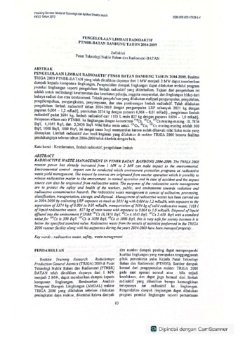 Zulfakhri, Zulfakhri (2010) Pengelolaan limbah radioaktif PTNBR-BATAN Bandung Tahun 2004-2009. In: Prosiding Seminar Nasional Teknologi dan Aplikasi Reaktor Nuklir Tahun 2010, 23 Nov 2010, Serpong.