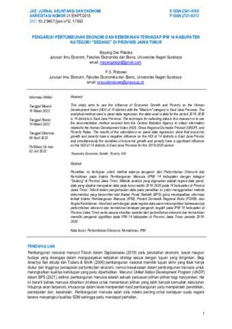Mayang Dwi Pitaloka and P.S. Prabowo (2022) Pengaruh pertumbuhan ekonomi dan kemiskinan terhadap IPM 14 kabupaten kategori “Sedang” di Provinsi Jawa Timur. JAE (Jurnal Akuntansi dan Ekonomi), 7 (2): 1. pp. 1-12. ISSN 2721-9313