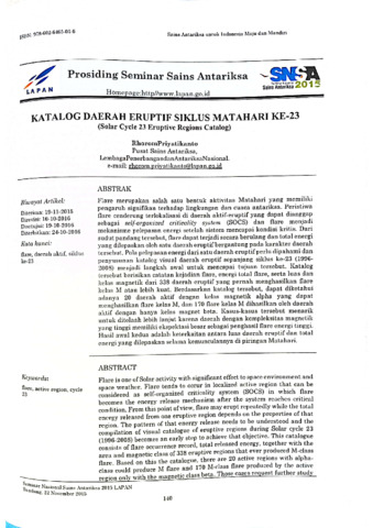 Rhorom Priyatikanto (2016) Katalog daerah eruptif siklus matahari ke-23. In: "Seminar Nasional Antariksa 2015" Sains Antariksa untuk Indonesia Maju dan Mandiri, Bandung, 22 November 2015, Auditorium Pusat Sains Antariksa LAPAN.