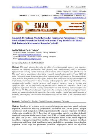 Penelitian ini bertujuan untuk mengetahui pengaruh perputaran modal kerja dan perputaran persediaaan terhadap profitabilitas perusahaan baik secara parsial maupun simultan dan untuk mengetahui perbedaan perputaran modal kerja dan perputaran persediaan sebelum dan sesudah covid-19. Penelitian ini menggunakan metode penelitian deskriptif kuantitatif menggunakan alat bantu eviews 9 dan SPSS 16. Metode analisis data yaitu regresi data panel dan uji beda. Hasil penelitian ini menunjukan bahwa secara parsial perputaran modal kerja berpengaruh negatif dan signifikan terhadap profitabilitas, perputaran persediaan berpengaruh positif dan tidak signifikan terhadap profitabilitas, sedangkan secara simultan perputaran modal kerja dan perputaran persediaan berpengaruh positif dan signifikan terhadap profitabilitas perusahaan subsektor farmasi. Tidak terdapat perbedaan yang signifikan antara perputaran modal kerja dan perputaran persediaan sebelum dan sesudah covid-19. saran yang dapat diberikan kepada perusahaan yaitu sebaiknya tim manajemen lebih memperhatikan lagi faktor pendukung modal kerja seperti jumlah persediaan, piutang perusahaan yang terlalu besar dan syarat penjualan kredit perusahaan.