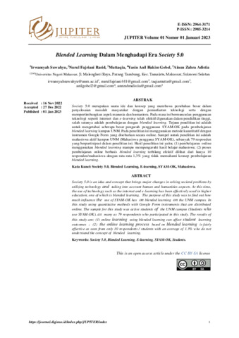 | Uncontrolled Keywords: | Society 5.0, Blended learning, E-learning, SYAM-OK, Mahasiswa |