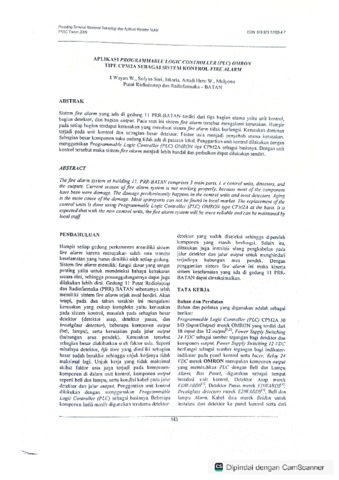 I Wayan W. and sofyan Sori and Jakaria and Artadi Heru Wardoyo and Mulyono (2009) Aplikasi Programmable Logic Controller (PLC) OMRON tipe CPM2A sebagai sistem kontrol fire alarm. In: Prosiding Seminar Nasional Teknologi dan Aplikasi Reaktor Nuklir Tahun 2009, 20 Agustus 2009, Serpong.