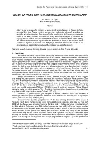Nia Marniati Etie Fajari (2010) Gerabah Gua Payung : jejak-jejak Austronesia di Kalimantan Bagian Selatan. Naditira Widya, 4 (1): 2. pp. 11-19. ISSN 1410-0932