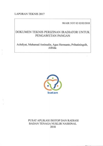 Achdiyat, Achdiyat and Aminuddin, Muhammad and Hermanto, Agus and Prihatiningsih, Prihatiningsih and Ilyusniwati, Alfrida (2018) Dokumen Teknis Perizinan Iradiator untuk Pengawetan Pangan. Technical Report. PAIR BATAN.