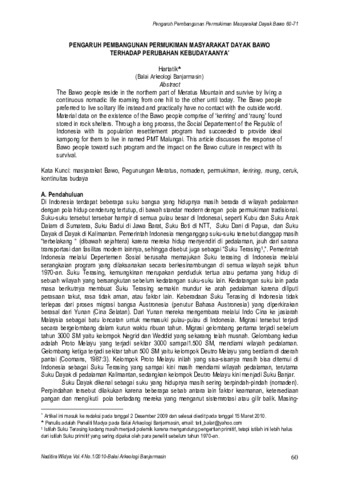 Hartatik (2010) Pengaruh pembangunan permukiman masyarakat Dayak Bawo terhadap perubahan kebudayaannya. Naditira Widya, 4 (1): 7. pp. 60-71. ISSN 1410 -0932