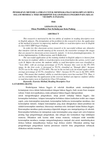 | Uncontrolled Keywords: | Exercise method, Reading descriptive text, Learning method, English language, Academic achievement |